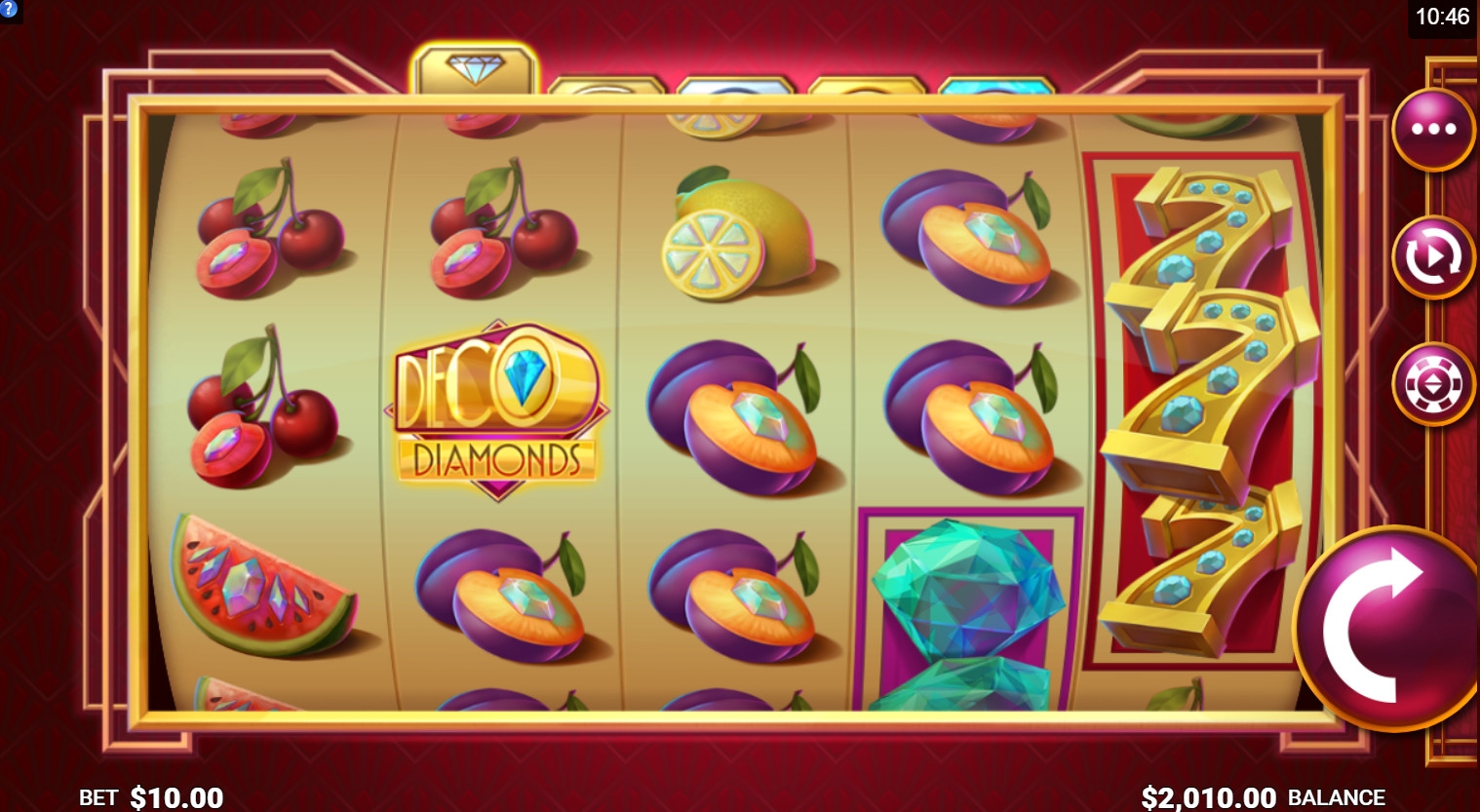 Игры на удвоение в Deco Diamonds нет. Исключения из правил и бонусы обсуждаются далее в обзоре.
