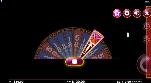 - Bonus Wheel – «Колесо фортуны» имеет три уровня: серебряный, золотой и бриллиантовый. Он определяется по количеству символов Wild, начавших раунд. Чем выше уровень, тем крупнее призы. В ходе бонусной игры раскручивается барабан с секторами, в которых указаны коэффициенты от х5 до х1000. При расчете выплаты они умножаются на общую ставку. В одном секторе указана стрелочка, переводящая игрока на следующий этап.