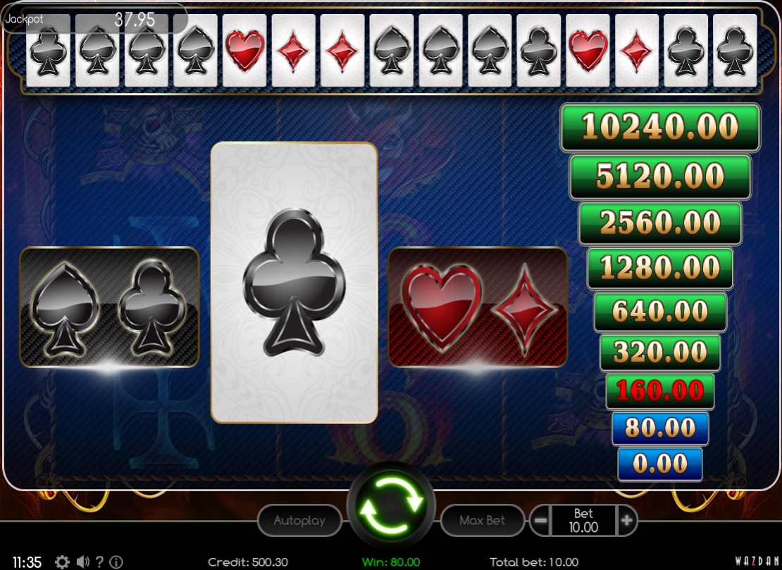 По завершению спина, принесшего выплату любого размера, можно начать игру по равным шансам. На дополнительном экране вы будете угадывать цвет следующей масти, которую определит генератор случайных чисел. Правильный ответ увеличивает выплату в два раза. Ошибка приводит к проигрышу ставки. Разрешается действовать несколько раз подряд.