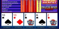 Deuces Wild Progressive – онлайн видео-покер, который играется по классическим правилам колодой в пятьдесят два листа. Все двойки в колоде играют роль джокеров. Они заменяют недостающие карты в традиционных комбинациях и образуют некоторые дополнительные комбинации.