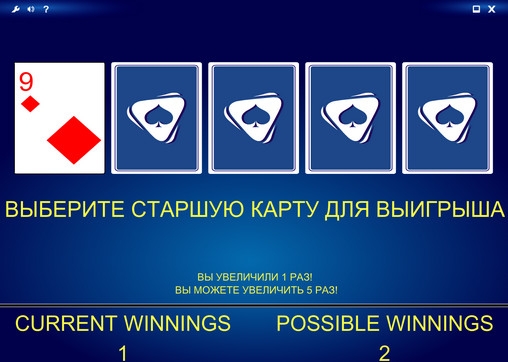 В риск-игре видео-покера Deuces Wild Progressive нужно открыть одну из четырех карт. Если она окажется старше карты дилера, выплата удвоится. Если младше, пользователь проигрывает ставку. При равных картах объявляется ничья. Удачных попыток в одном раунде может быть не более пяти подряд. Права на ошибку нет.