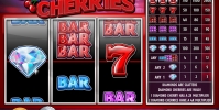 На экране автомата появляются одна, две и три полоски BAR, бриллианты, красные семерки и логотип игры с красными вишнями.