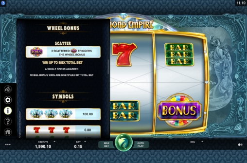 В игровом аппарате Diamond Empire отсутствует прогрессивный джекпот Microgaming.