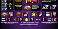 Оформлением и набором символов видео-слот Diamond Wild несколько напоминает классические игровые автоматы. В его интерфейсе прямо над барабанами располагается окно с разного рода информацией, а на экране появляются вишенки, полоски Bar, колокольчики и прочие картинки, типичные для традиционных моделей. Однако, стоит только немного ознакомиться с набором игровых функций слота Diamond Wild, становится понятно, что это отнюдь не классический автомат, в чем вы сможете убедиться сами из нашего обзора.