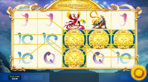 В игровом аппарате Divine Ways пять барабанов, двадцать линий для комбинаций и пятнадцать ячеек для символов на экране.