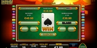 Весь выигрыш можно забрать или поставить на кон в игре по равным шансам. Она запускается на дополнительном экране, где появляется закрытая карта. Вы сами решаете, что будете угадывать: цвет или масть. Назовете правильно цвет – выплата удвоится. Верно определите масть – кредитов станет больше в четыре раза. Ошибка означает проигрыш ставки. Подряд можно действовать до пяти раз.