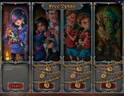 Бонусный раунд видео-слота имеет вид необычных бесплатных спинов. Он представлен в четырех разновидностях. Изначально игрок имеет доступ лишь к первой из них. Когда он примет в них участие три раза, ему откроется следующий этап. И так далее. Рассмотрим нюансы каждого из этапов:
