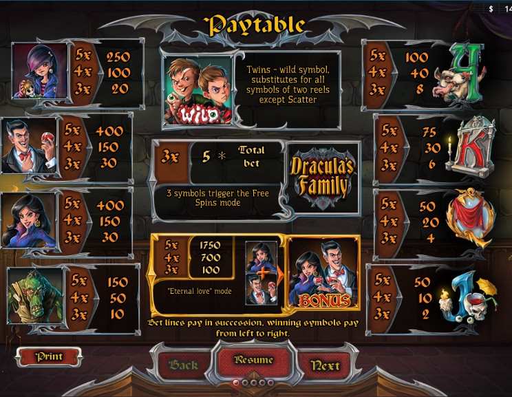 Скачивать игровой автомат Dracula’s Family нет необходимости. Его можно открыть во флэш-версии непосредственно на сайте.