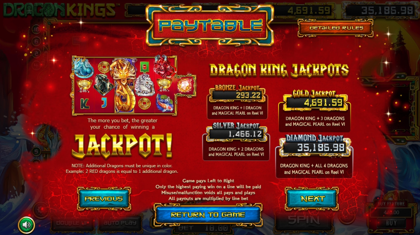 В Dragon Kings разыгрываются четыре накопительных джекпота: