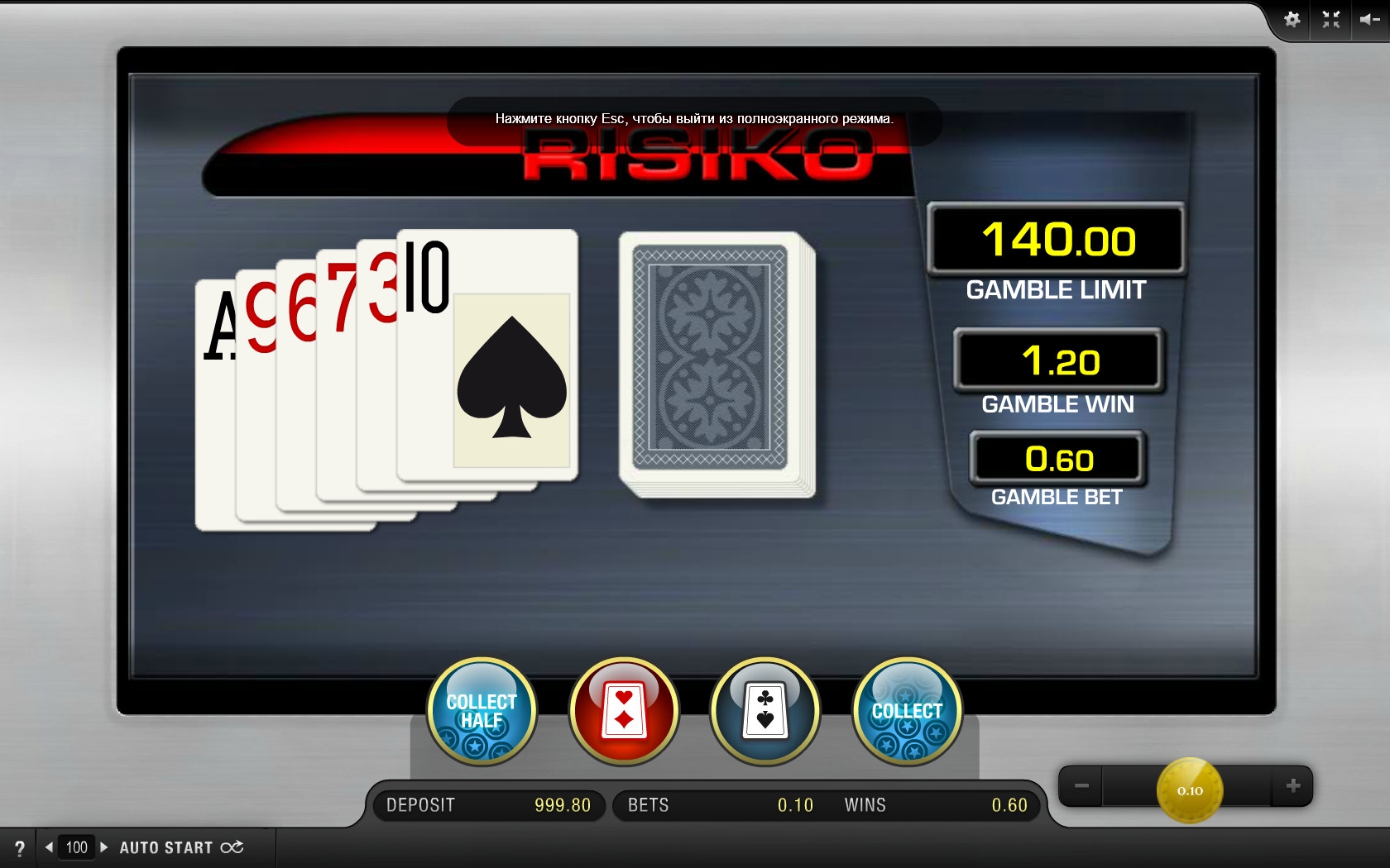 Деньги, начисленные за спин, можно сразу не забирать. Попробуйте увеличить сумму (или ее половину) в игре на удвоение. Она представлена в двух вариантах. Первый – это угадывание цвета закрытой карты. Второй – движение по ступенькам лестницы. В обоих случаях положительный исход раунда означает увеличение выплаты в два раза, а отрицательный результат приводит к проигрышу ставки. Играть можно несколько раз подряд, но есть установленный максимум.