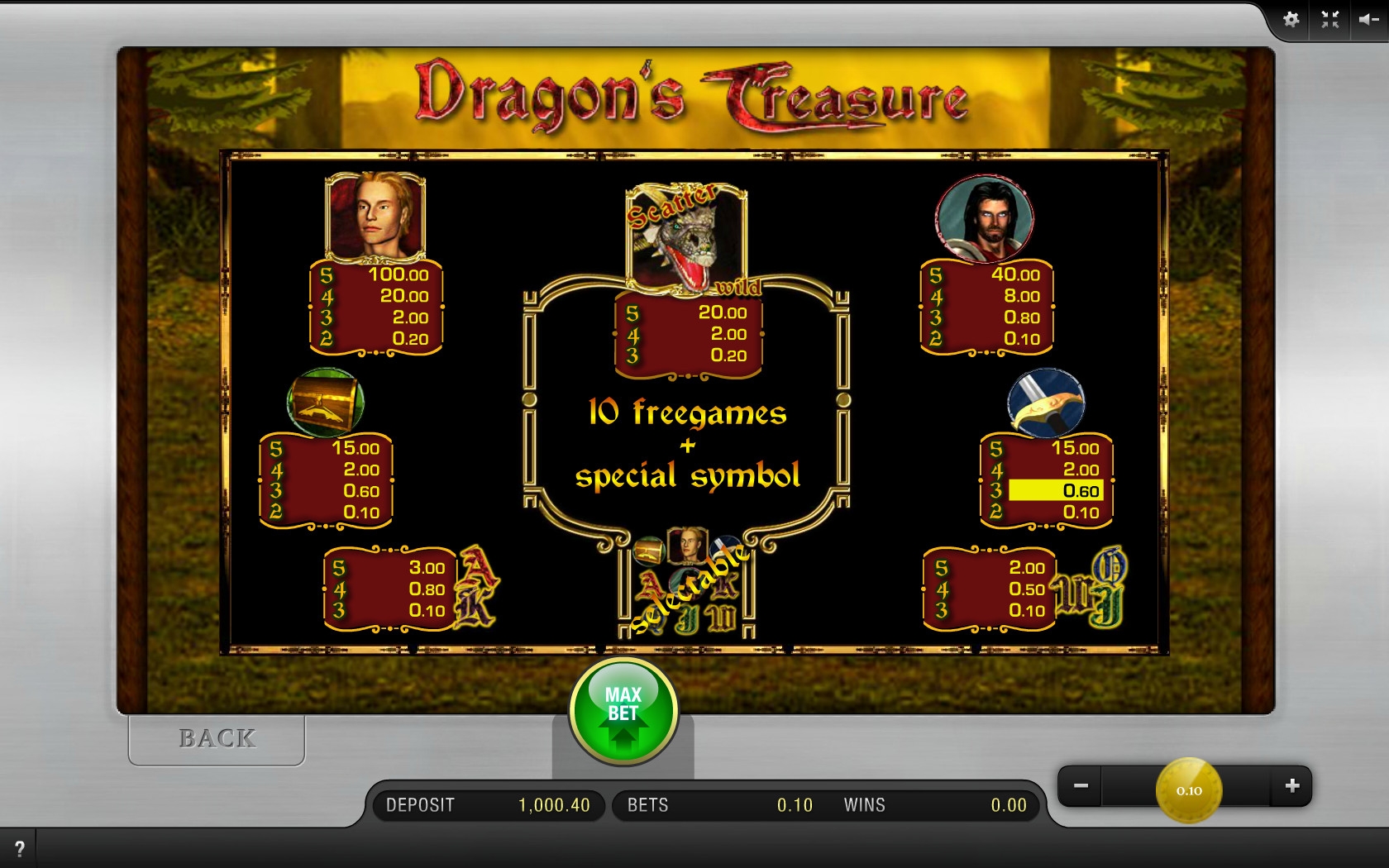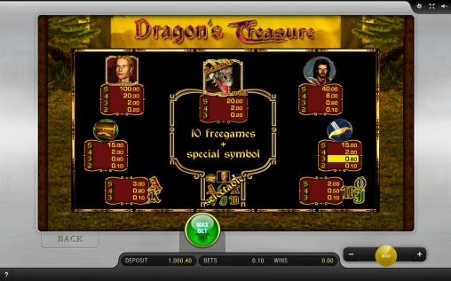 Играть на игровом автомате «Золото дракона» разрешается по ставке на линию от одного цента до двух евро. На раунд принимается до десяти евро.