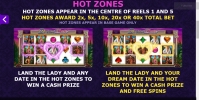 - Hot Zones – В средних ячейках третьей и пятой колонок находятся так называемые «горячие зоны». Если в них одновременно выпадают девушка и любой парень, вы получаете выплату (от двух до сорока общих ставок). Если там оказываются девушка и ее партнер, сначала начисляется выигрыш, а затем начинаются фри-спины.