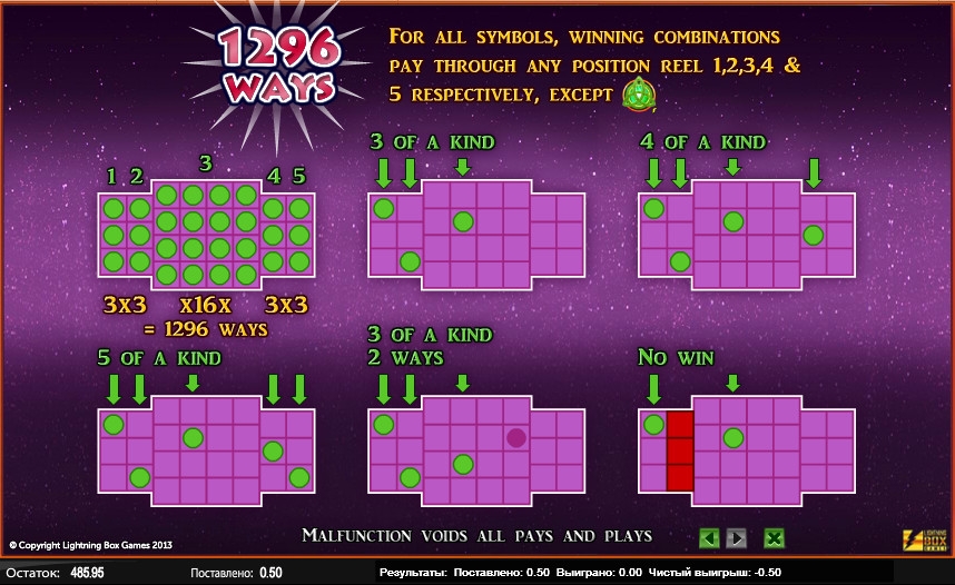 Пользовательских настроек почти нет. Коэффициенты выплат и краткие правила доступны в специальной таблице.