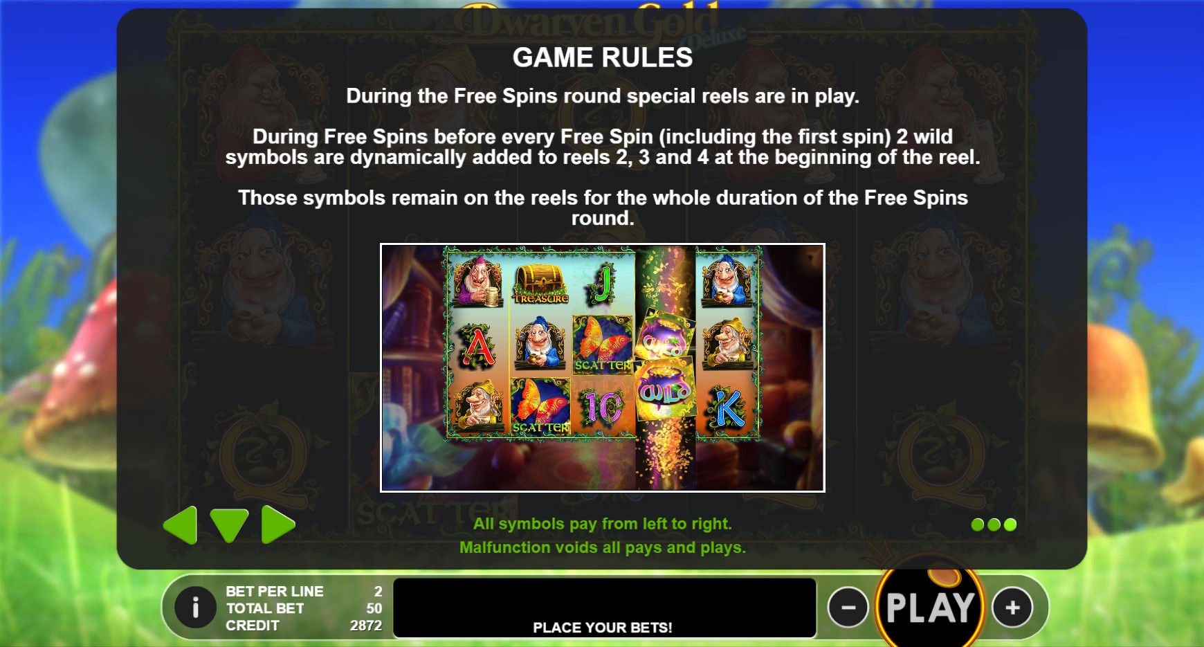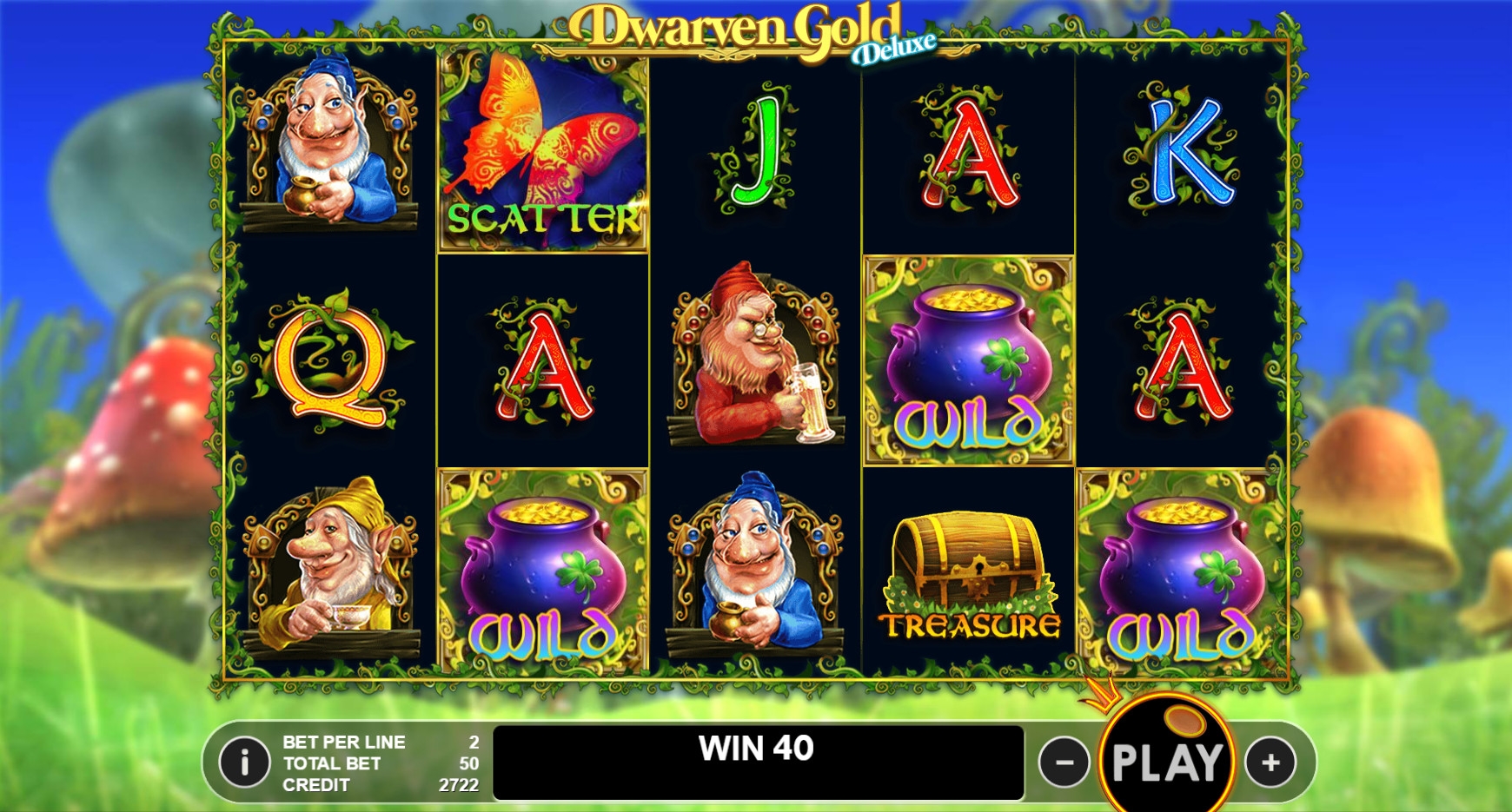 Игра по равным шансам в Dwarven Gold Deluxe отсутствует. Бонусы рассматриваются далее.