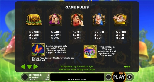 Это видео-аппарат о гномах, поэтому именно их вы увидите на барабанах. Также в колонках появляются сундук с золотом и номиналы карт от десятки до туза.