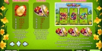 Надо признать, что в игровом автомате «Пасхальные яйца» нет ни малейшего намека на религиозную тематику. На барабанах изображены домашние животные, в числе которых цыплята, кролики, ягнята и петух, а также разукрашенные, как писанки, номиналы игральных карт.