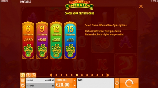 В видео-обзоре Eastern Emeralds на Casinoz показаны фри-спины в одной из версий.
