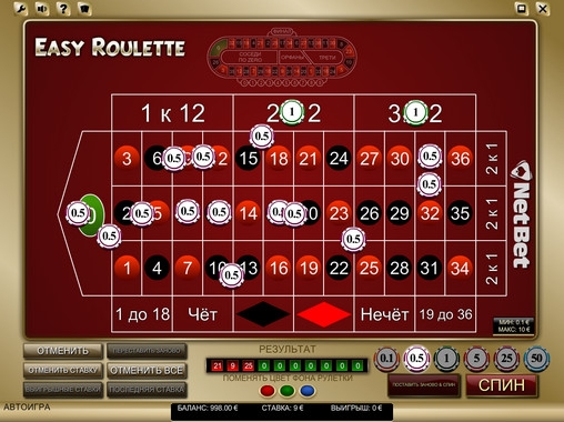 Играть в Easy Roulette можно по ставке от десяти центов до десяти евро в один номер.
