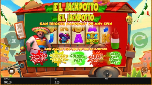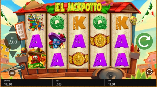 El Jackpotto – видео-слот с пятью барабанами, двадцатью фиксированными полосами и пятнадцатью картинками на основном экране.