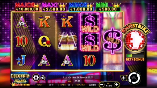 Играть на видео-слоте Electric Lights можно по любому количеству активных линий вплоть до тридцати. На них принимаются одинаковые ставки в диапазоне от одного цента до ста евро (0.01 – 3000 евро на спин).