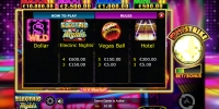 На барабанах видео-слота можно увидеть номиналы карт от девятки до туза, три золотых семерки, шикарный отель-казино и неоновые вывески с девушкой в ковбойском наряде, цветком и надписью Vegas.
