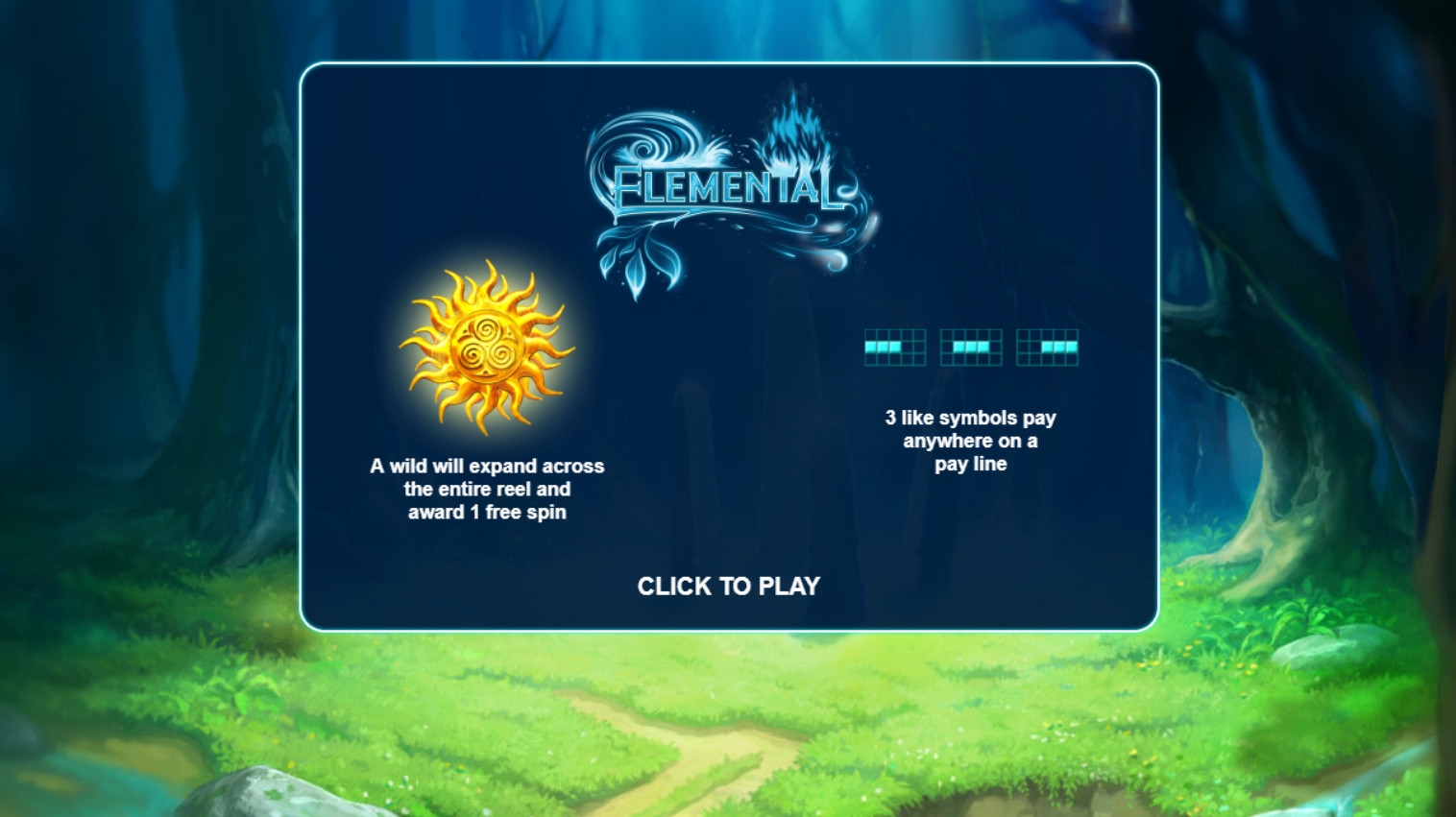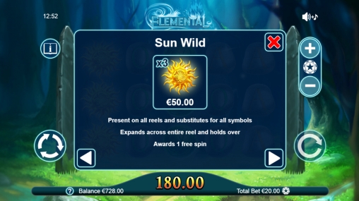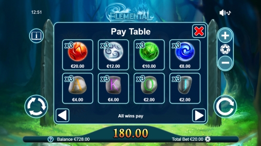 Видео-слот Elemental состоит из пяти вращающихся барабанов с разнообразными картинками, из которых составляются выигрышные комбинации. Одновременно на экране появляются пятнадцать иконок, выстраивающихся в три ряда.