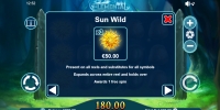 - Wild (солнце) образует комбинации по вышеописанным правилам и заменяет другие картинки в цепочках. Джокер расширяется, заполняя столбец, и начинает респин.