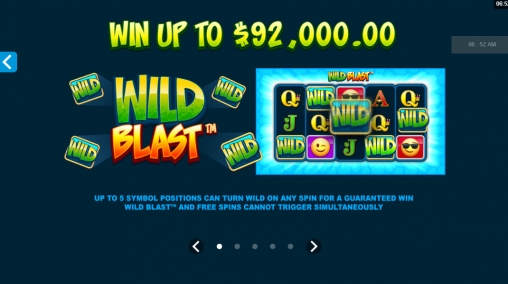 - Wild Blast – В любом спине на экране могут появиться до пяти дополнительных джокеров. Они выпадают в случайно выбранных ячейках.