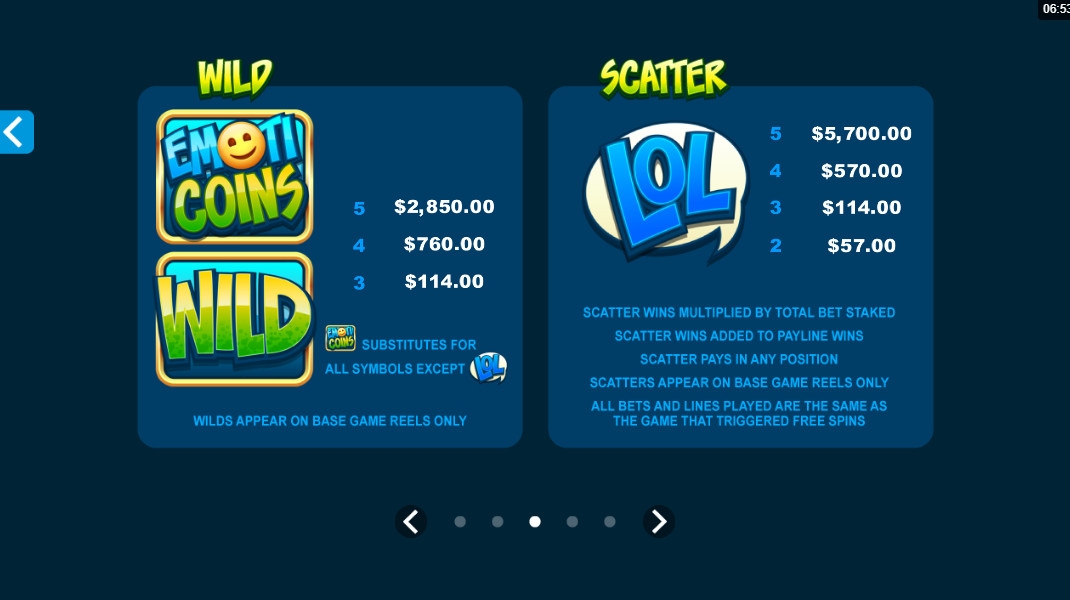 Вы найдете Emoticoins бесплатно и на деньги в онлайн-казино на платформе Quickfire. Демо-версия предлагается непосредственно на портале Casinoz.