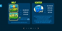 - Wild (логотип Emoticoins) выпадает во всех колонках и составляет комбинации по общим правилам. Также он заменяет стандартные иконки в цепочках и задействуется в бонусных функциях.