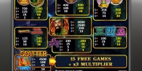 Три, четыре или пять скаттеров дают право на запуск пятнадцати бесплатных вращений, в которых все выигрыши утраиваются. Ставку здесь за игрока делает заведение. Спины могут быть продлены.