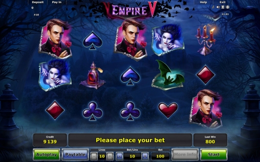 Игровой автомат Empire V выполнен в тематике посвященной вампирам,символы оформлены очень красочно . Интерфейс не русифицирован но интуитивно понятен.Возврат модели составляет 96%,что очень не мало.