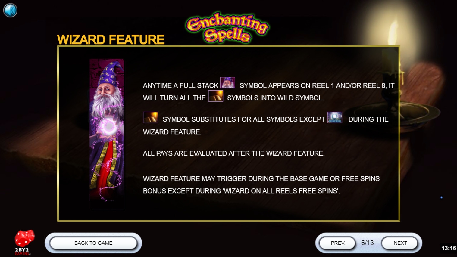 - Wizard Feature – Если джокеры занимают целиком одну или две крайних колонки, все книги на экране становятся дополнительными символами Wild.