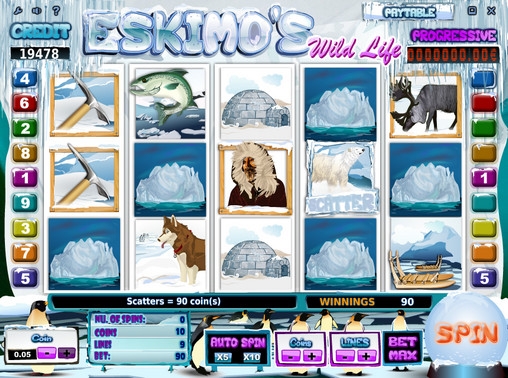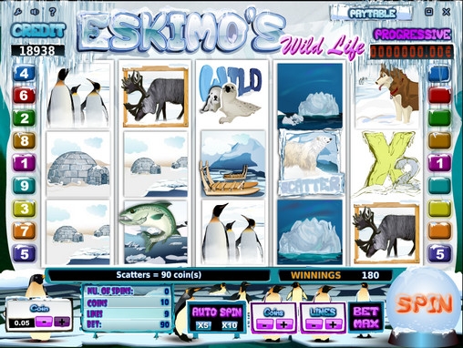 В видео-слоте Eskimo’s Wild Life разыгрывается накопительный джек-пот. Чтобы его получить, нужно собрать на активной линии пять символов Progressive. Три и четыре таких символа дают право на выплаты по отдельным коэффициентам, указанным в таблице выплат.