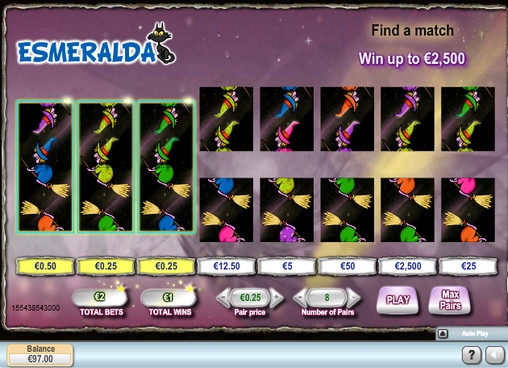 Цель игры в Esmeralda заключается в том, чтобы найти составить цельное изображение из двух карточек. Если две картинки совпадают, вы получаете рисунок с ведьмой Эсмеральдой, летящей на метле. Играть можно по одной – восьми парам карточек.