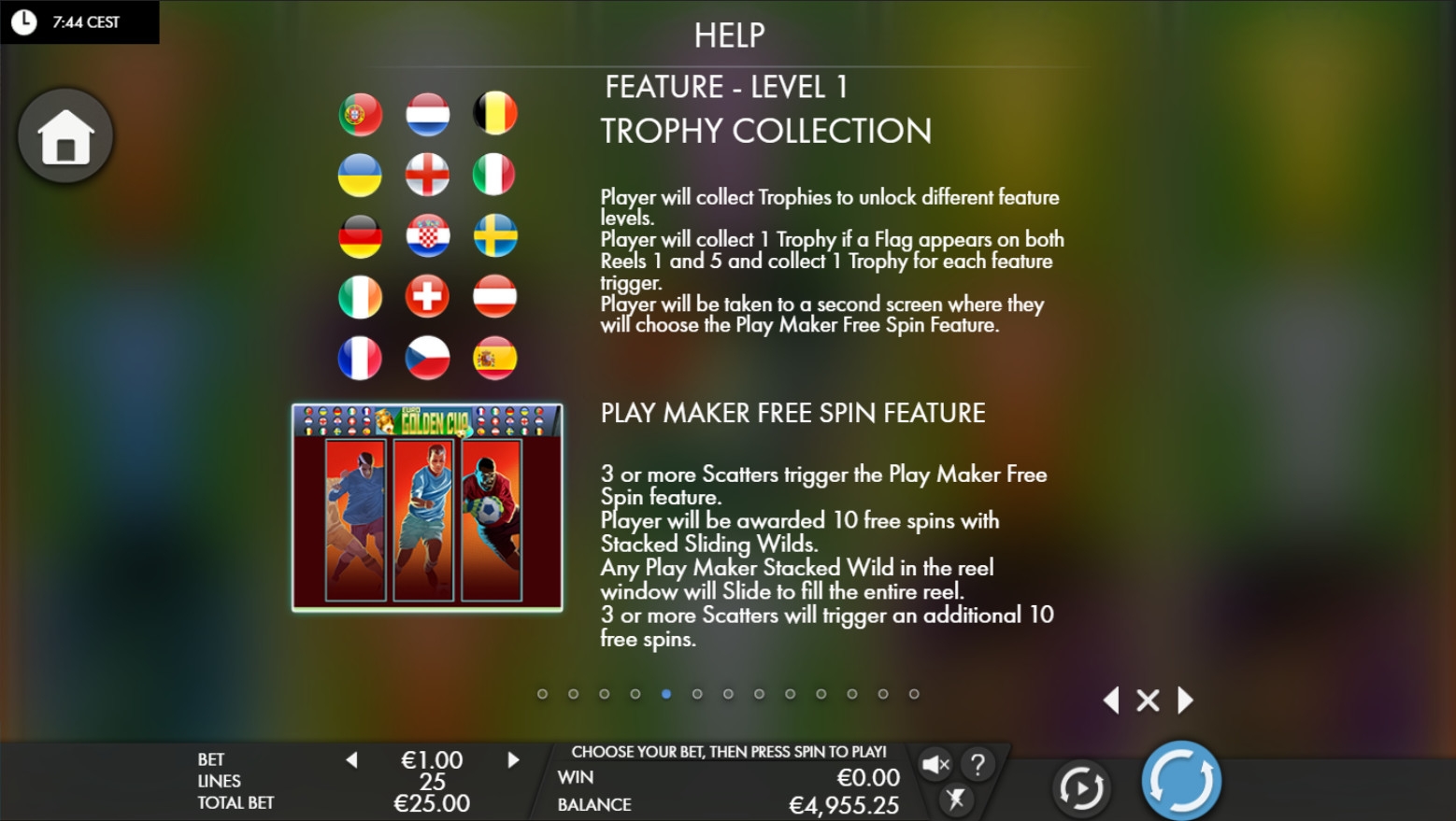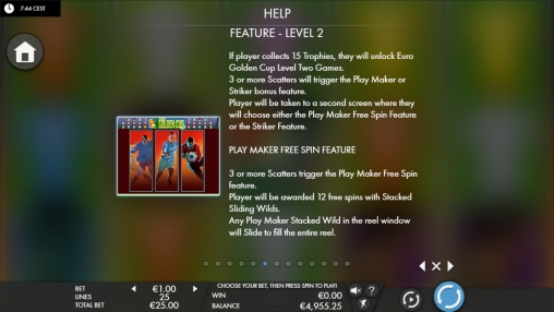 Подробное описание правил всех бонусных раундов вы найдете в таблице выплат игрового автомата «Золотой Евро-кубок».