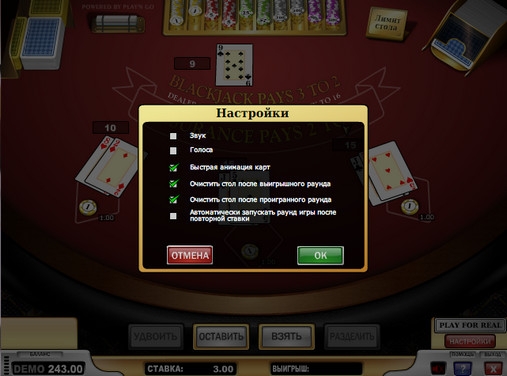 Интерфейс игры European Blackjack Multihand доступен на русском языке. Переведены не только все надписи на основном экране, но также диалоговые окна и справочный раздел. Есть различные пользовательские настройки: автоматическое управление ставками, звук и так далее.
