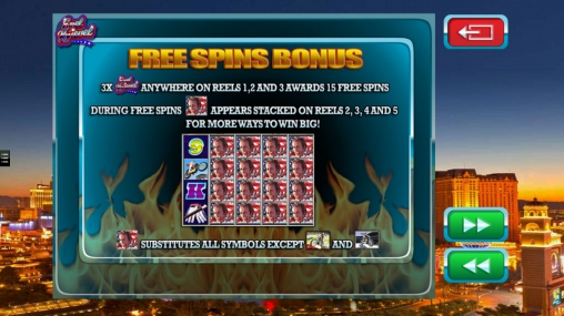 - Scatter (логотип Evel Knievel) изображен на первых трех барабанах. Когда он одновременно появляется в этих колонках, стартует раунд пятнадцати фри-спинов. В них ставку за клиента делает казино. При этом на всех барабанах, кроме первого, символ Wild идет длинными полосами, участвуя в образовании комбинаций.