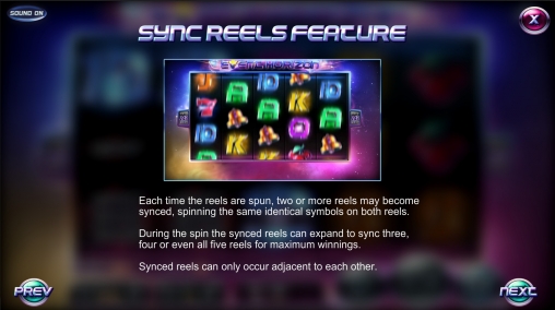 Вышеупомянутая функция Sync Reels означает, что в каждом спине на двух соседних барабанах появляются одинаковых картинки. Естественно, это значительно повышает вероятность получения выплат.