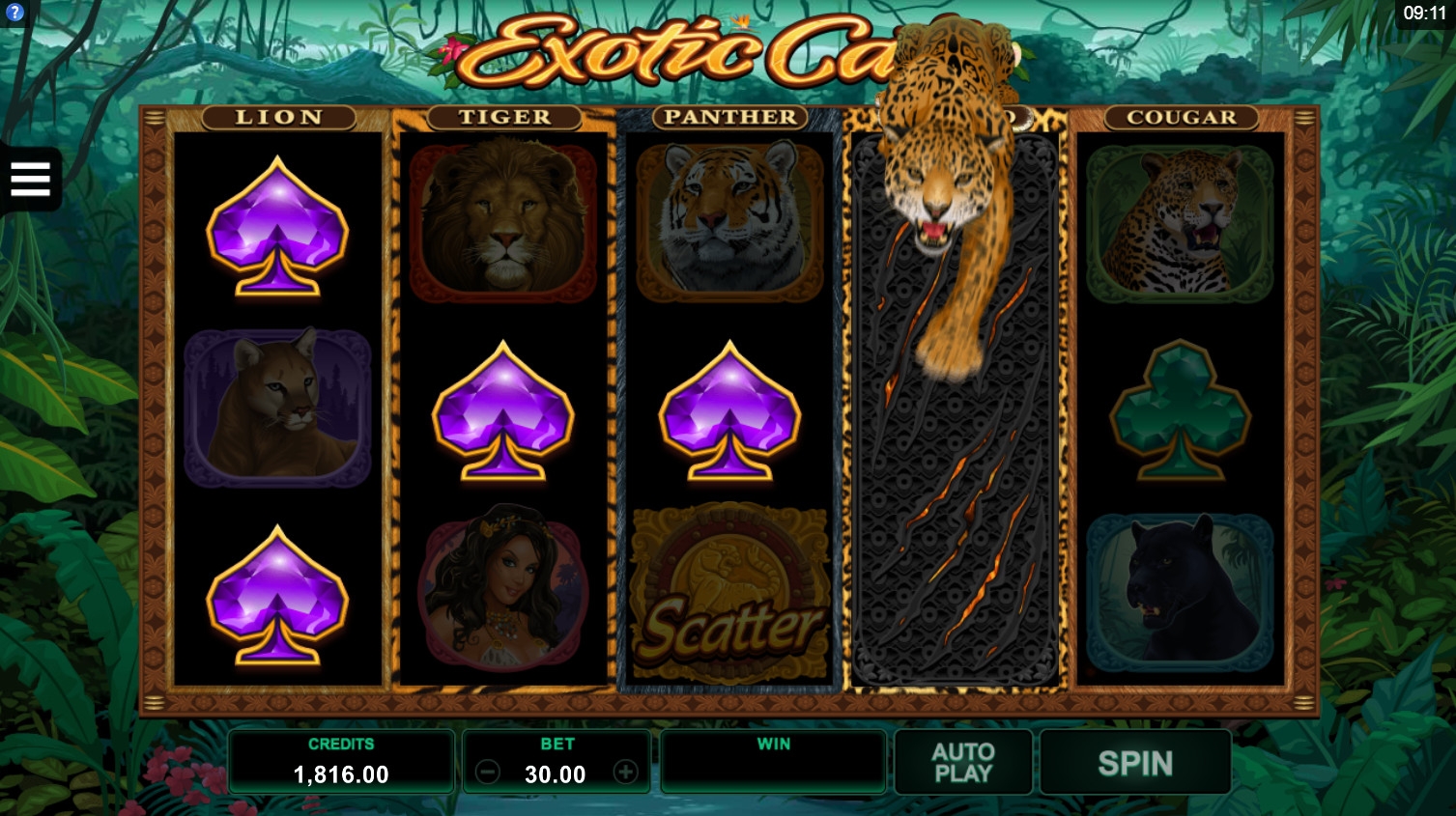 Игровой аппарат Exotic Cats компании Microgaming также посвящен этим животным, но в данном случае речь идет о диких кошках: львах, тиграх, пумах и других крупнейших представителях благородного семейства.