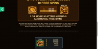- Free Spins – Три, четыре или пять Scatter начинают десять бесплатных вращений. Ставку прежнего размера делает казино. От трех скаттеров продлевают раунд еще на пять спинов.
