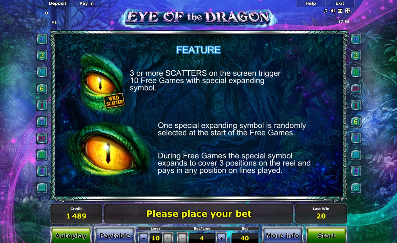 В демо-версии Eye of the Dragon, которую тестировали обозреватели Casinoz, не было игры на удвоение, что нетипично для моделей Novomatic.