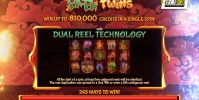 - Dual Reels – Перед началом каждого спина случайным образом выбираются от двух до пяти барабанов, расположенных рядом друг с другом. На них появляются одинаковые наборы картинок, что значительно повышает вероятность формирования сразу нескольких комбинаций в одном раунде.
