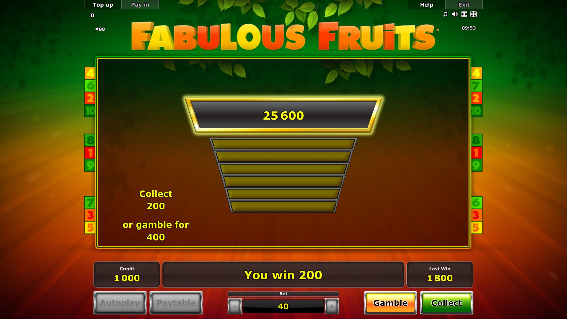 Ярко, красиво и вкусно. Мне нравятся такие слоты. Классика своего рода! Из преимуществ только игра на удвоение, больше ничего нет. И на том спасибо! Так себе, ничего особо интересного.