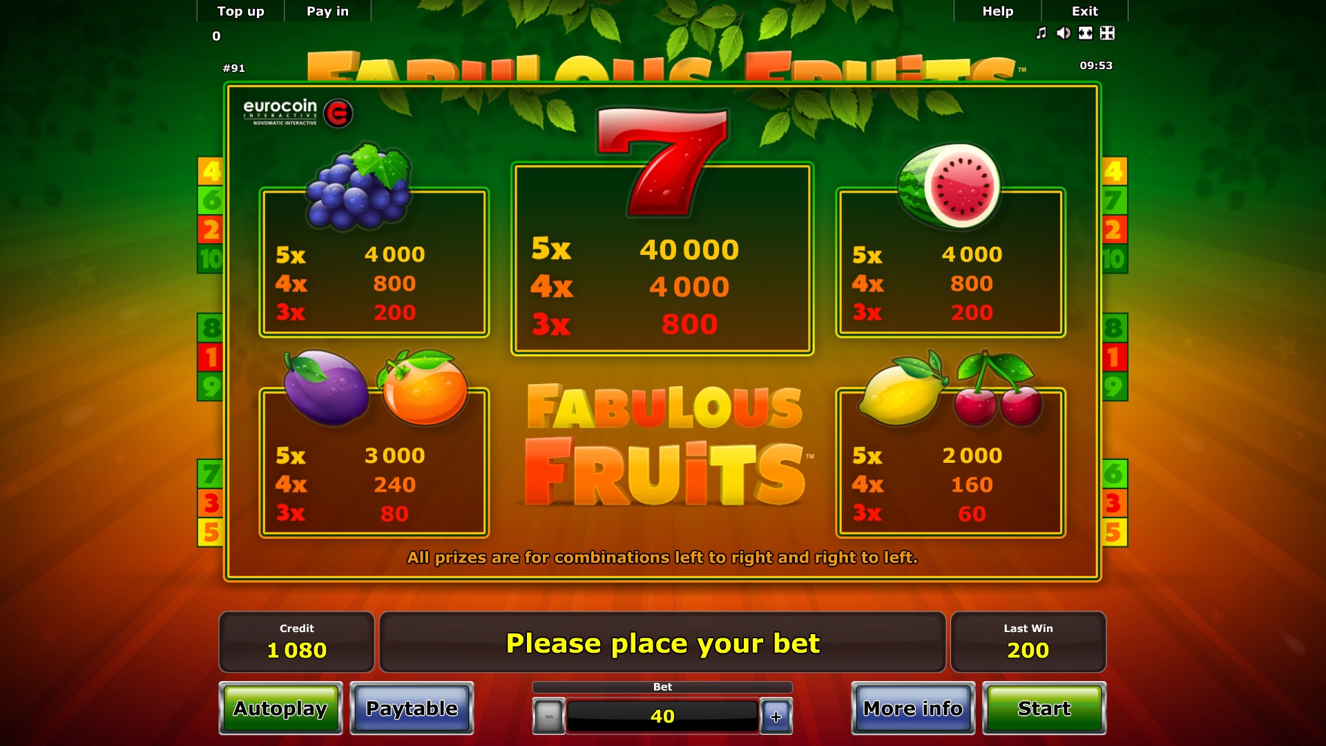 Протестировать Fabulous Fruits бесплатно или играть на деньги можно в различных интернет-казино с лицензионным софтом «Новоматик». Наши обозреватели испытывали его в Star Games.