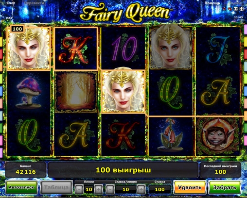 Я девушка и игры, а особенно азартные, меня интересуют не меньше мужского населения! С Феей-королевой я погрузилась в сказачную атмосферу восхитительного леса. В нем множество различных необычных существ. Но главный символ из них конечно Фея-королева, которая может заменить любой символ! На игровом автомате Фея-королева довольно легко играть, даже новичку под силу разобраться за короткое время.