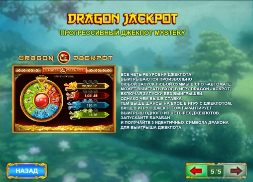 В Fei Cui Gong Zhu есть четырехуровневый прогрессивный «Джекпот дракона». Он разыгрывается в специальном раунде, который может начаться в любом обычном спине независимо от ставки. Вы увидите аналог колеса фортуны с несколькими секторами.