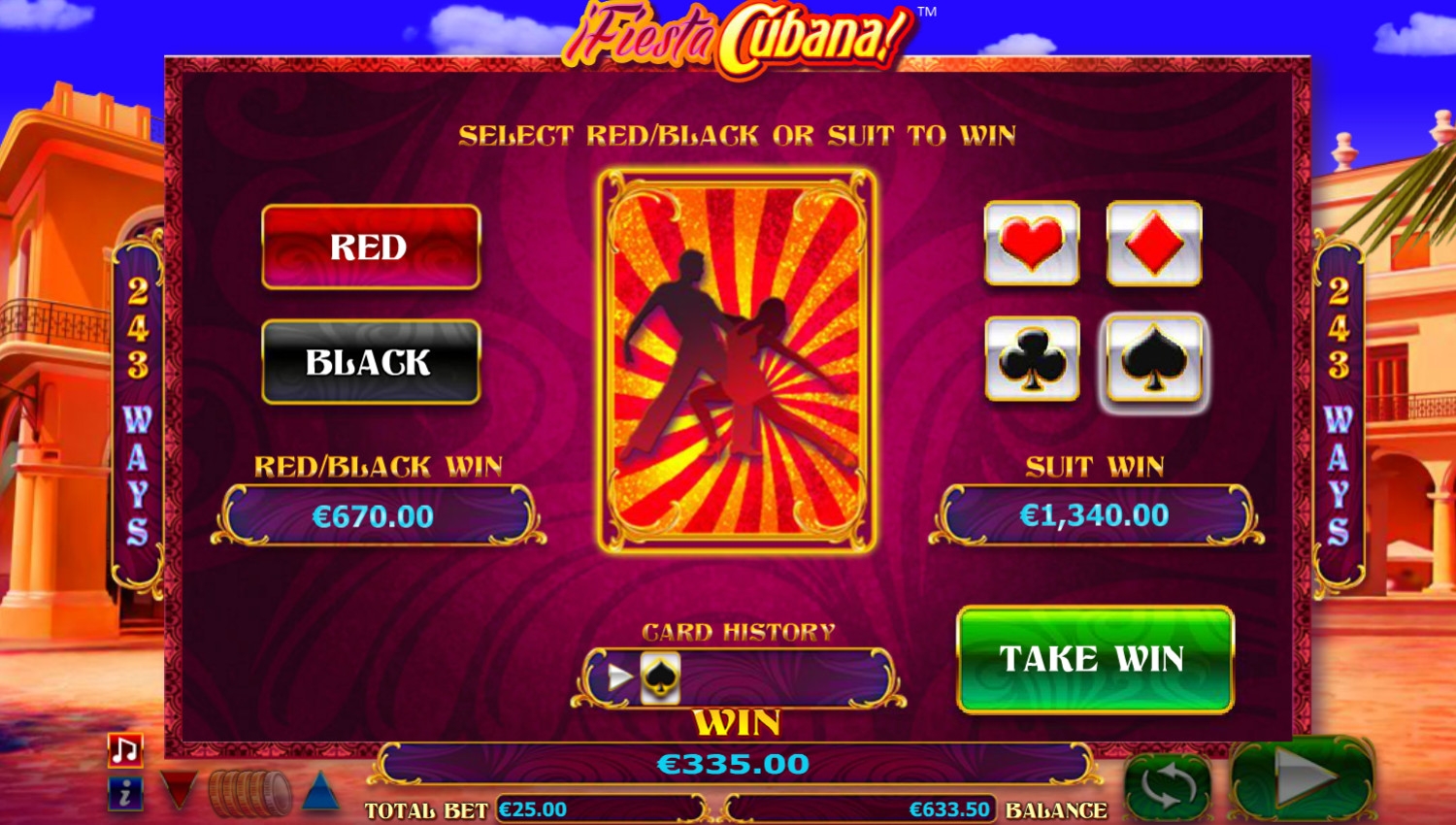 Получил любую выплату, клиент может попытаться ее увеличить. Чтобы она удвоилась, нужно угадать цвет закрытой карты. Чтобы выигрыш умножился в четыре раза, необходимо определить масть. Подряд можно играть до пяти раз, но при первой же ошибке деньги уйдут в кассу заведения. Останавливаться разрешается на любом этапе.