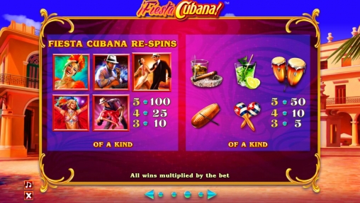 Демо-версию аппарата можно испытать бесплатно на Casinoz. Не забудьте посмотреть наш видео-обзор Fiesta Cubana. В нем показаны респины, бесплатные вращения и другие возможности.