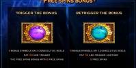- Bonus (магические камни) – Пять таких символов на разных барабанах дают выигрыш в размере пятидесяти монет и начинают восемь фри-спинов.